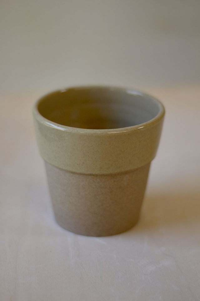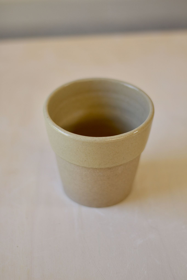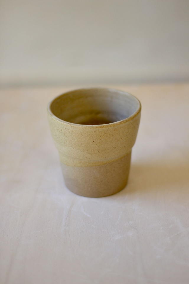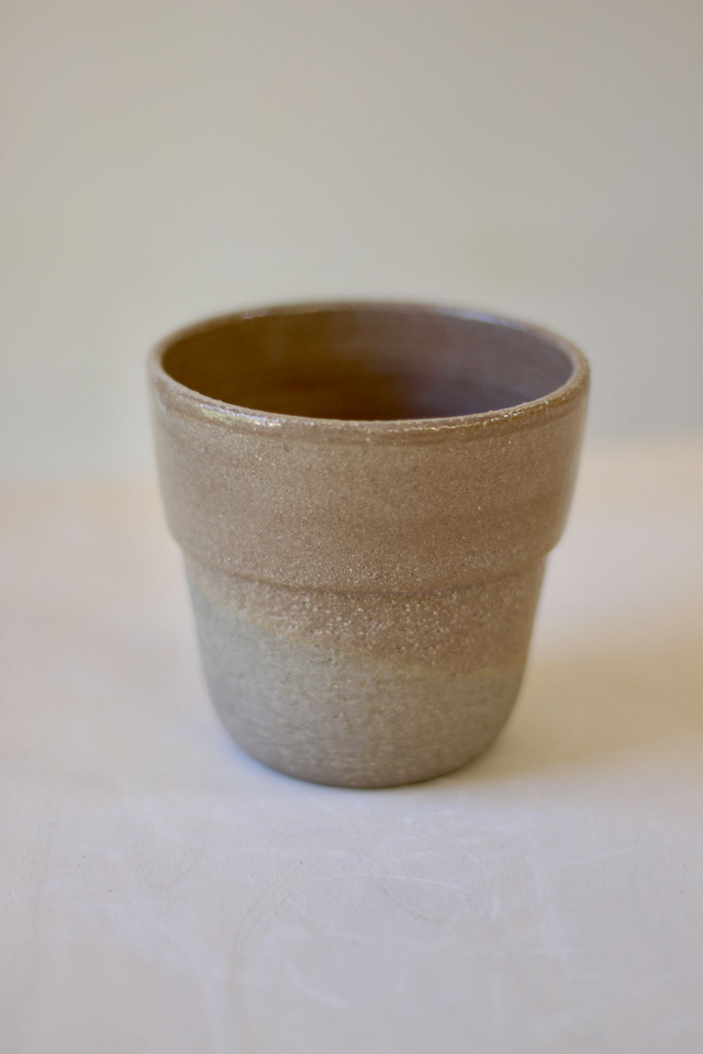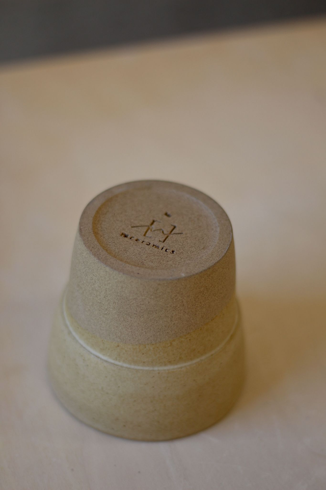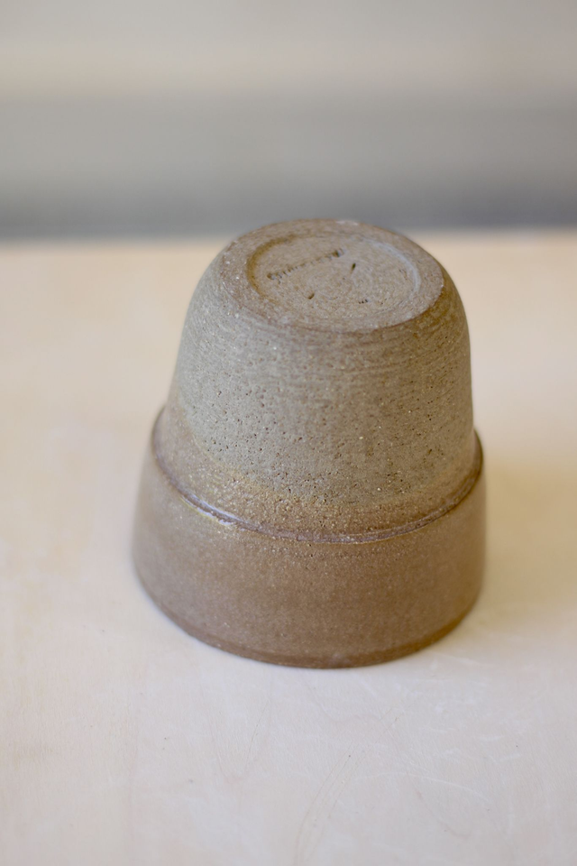 Taza diseñada específicamente para el café de especialidad, conserva medidas y proporciones óptimas. Torneada en gres grisáceo o beige y esmaltado con mezcla de tierras. Horneado a 1280 grados