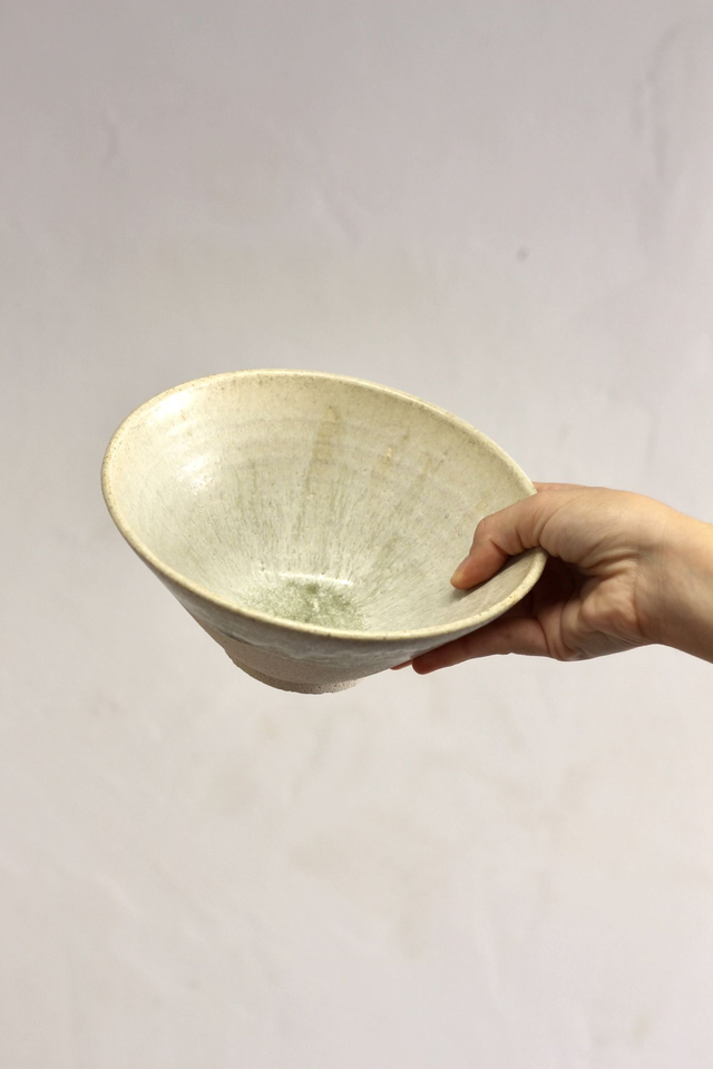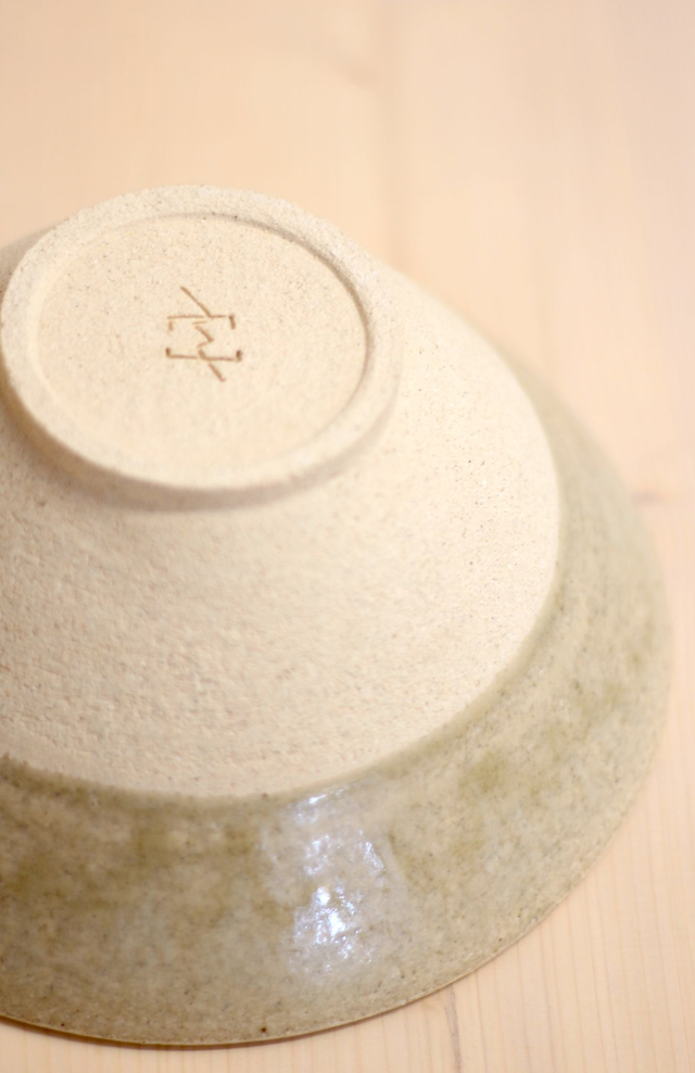 Bol torneado en gres chamotado beige y esmaltado con mezcla de tierras. Horneado a 1260 grados